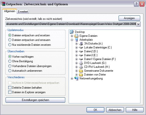 Welches Programm? Ich verwende 7-Zip zum Entpacken (Homepage | Download) oder WinRAR (Homepage